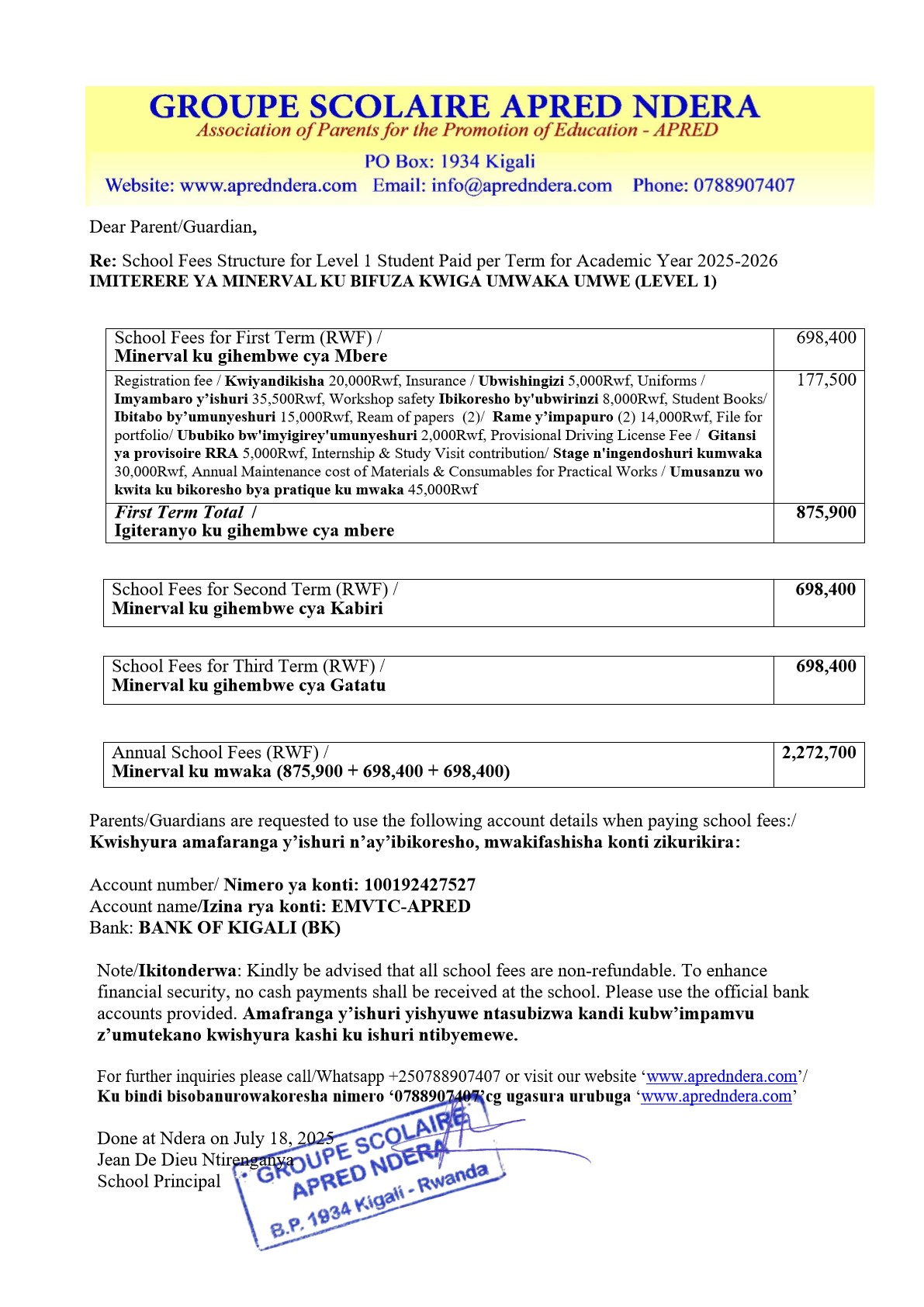 Fee Structure Boarding General Education (S2, S3, S5, S6) Day Scholar (S2, S3, S5, S6) Boarding General Education (Senior 1 & Senior 4) Day Scholar General Education (Senior 1 & Senior 4) Boarding TSS and VTC Day Scholar TSS and VTC